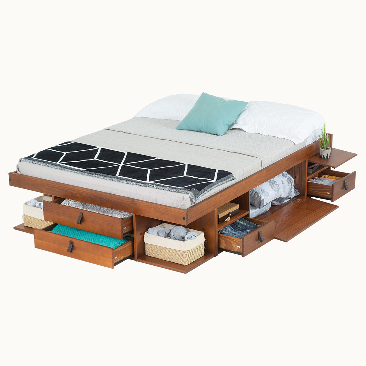 - Unser Holzbett Bali hat ein cleveres Design: Die mittleren Bretter des Bettgestells sind abnehmbar, so hast Du extra Platz für Koffer, Kisten, Taschen... Dieser Bettrahmen wurde speziell von unserem Team entwickelt und wir haben das exklusive Patent. Lass Dich nicht von Kopien täuschen!