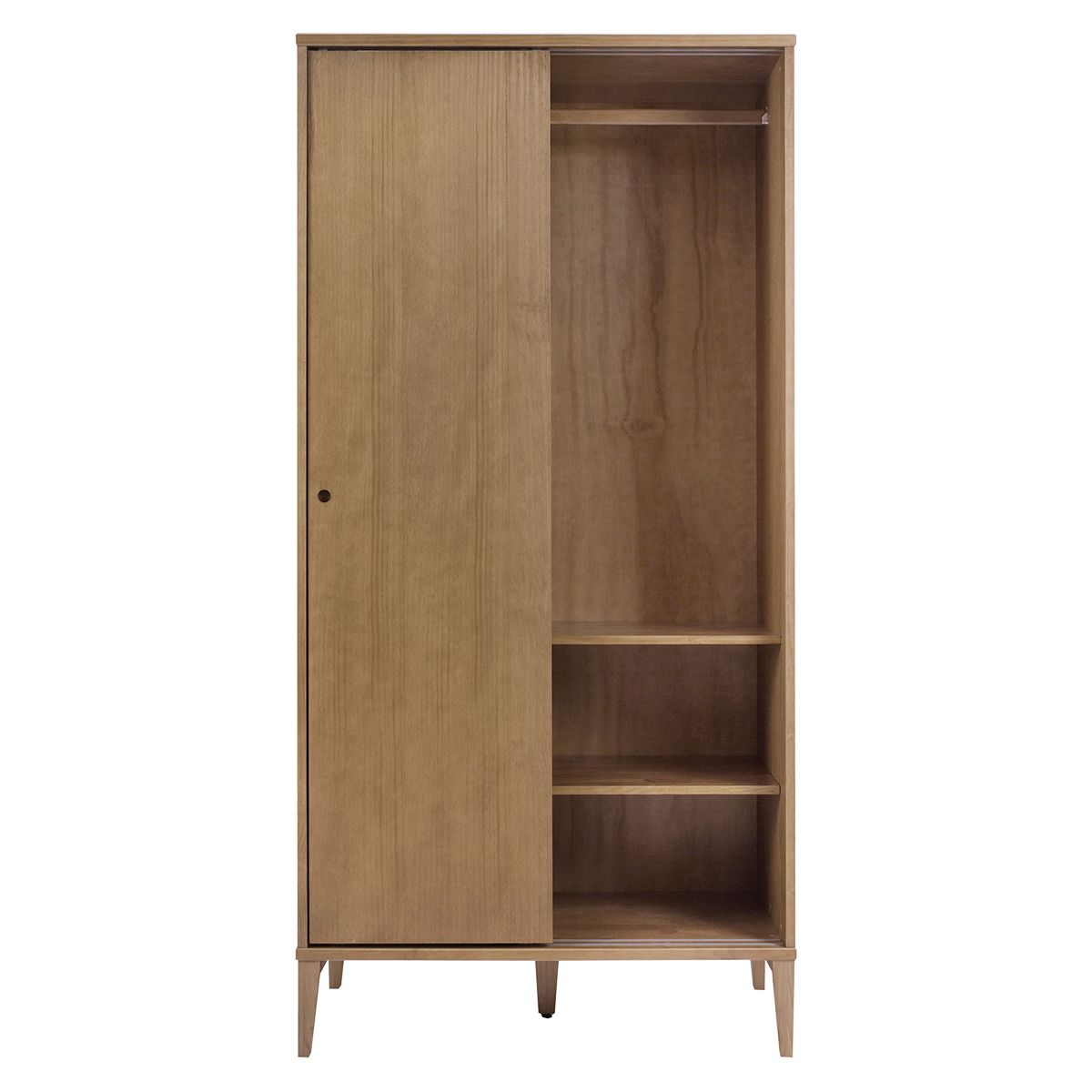 Wie wäre es, wenn Sie einen Kleiderschrank nach Ihren Wünschen anpassen könnten? Genau so sollte ein Möbelstück sein, wie wir finden. Daher können Sie nicht nur die Einlegeböden nach Ihren Vorstellungen in der Höhe verstellen, Sie können auch entscheiden, ob der Schrank geschlossen oder offen verwendet wird. Dafür ist er mit Schiebetüren ausgestattet, die bei einer offenen Stellung nicht in den Raum hineinstehen und somit noch einmal mehr Platz sparen. Ein weiteres Highlight ist, dass der Kleiderschrank nicht direkt auf dem Boden steht, sondern vier Füße besitzt, die eine Höhe von 20 Zentimetern haben. Das sieht nicht nur elegant aus, das bietet auch unter dem Schrank die Möglichkeit, Dinge wie etwa  Schuhe zu verstauen. Und nicht zuletzt können Sie unseren Kleiderschrank auch als Mehrzweckschrank verwenden – denn wo steht geschrieben, dass Sie zwingend Kleider dort deponieren müssen? Kombinieren Sie den Charme-Kleiderschrank mit weiteren Produkten dieser Serie und statten Sie Ihre Wohnung extravagant mit Möbeln von memomad aus.