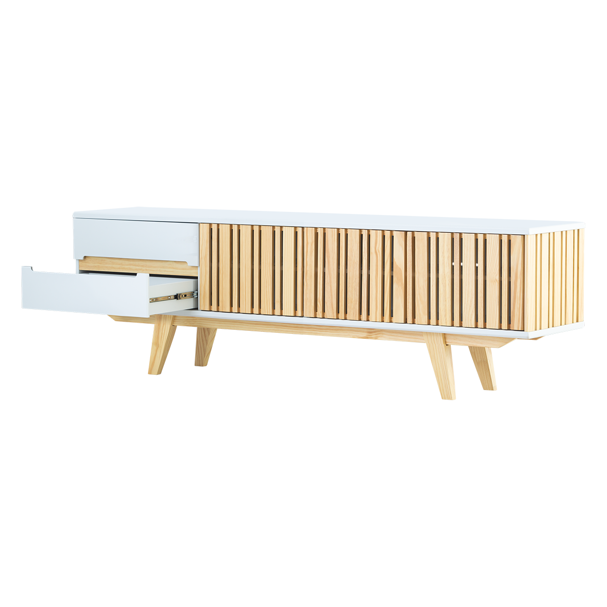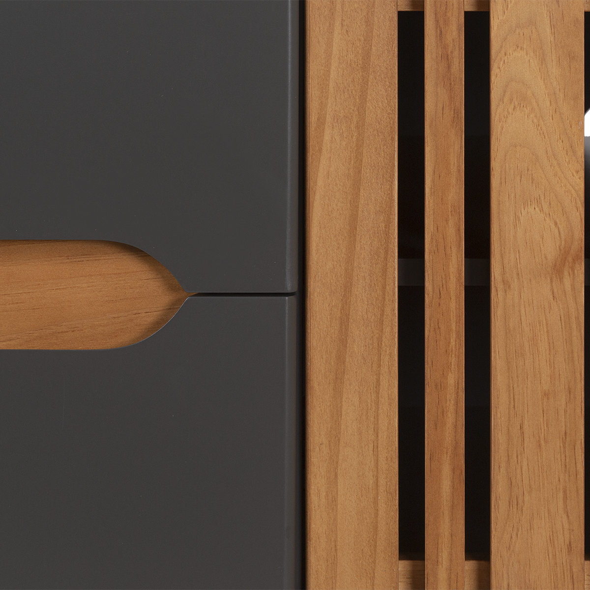 Die Schubladen können je nach Bedarf und gewünschter Umgebung auf der rechten oder linken Seite des Lowboards montiert werden.