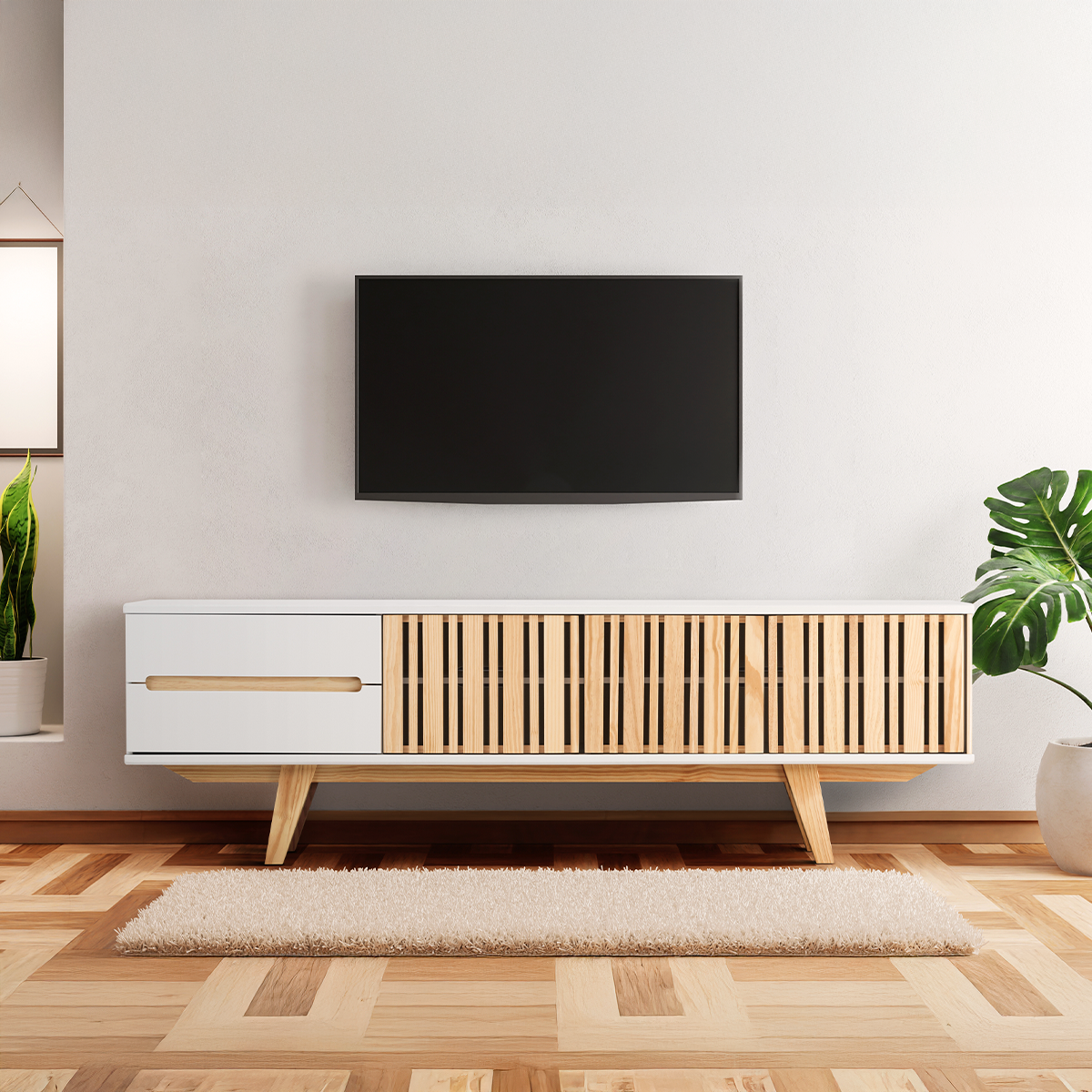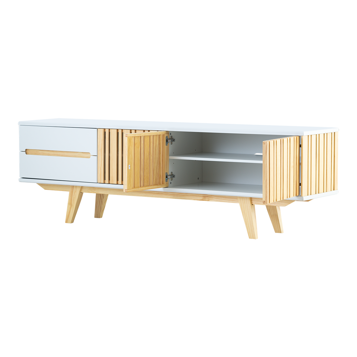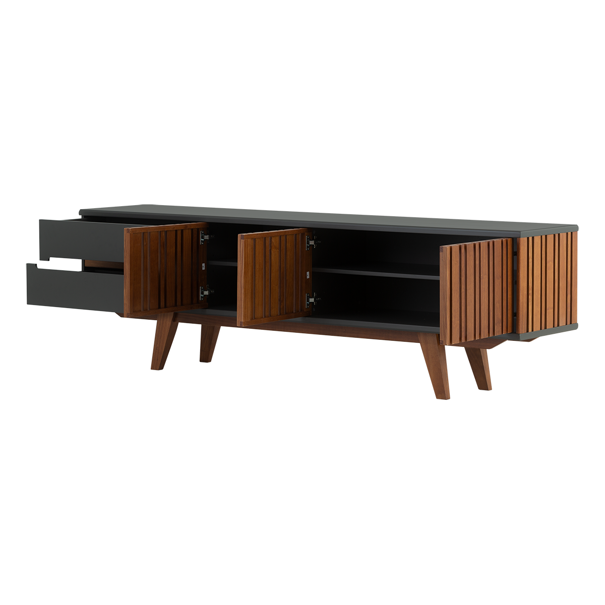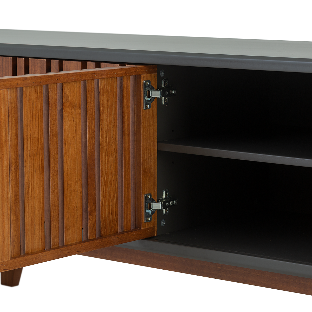 Dieses Rack kann alle elektronischen Geräte aufnehmen, die Wi-Fi und/oder Bluetooth verwenden, und Sie verlieren das Signal nicht, dank des Designs mit Lücken in den Türen, das weiter sendet (auch bei geschlossenen Türen). Sie können Geräte und Kabel "verstecken" und Ihre Fernbedienung funktioniert weiterhin ohne Änderungen.