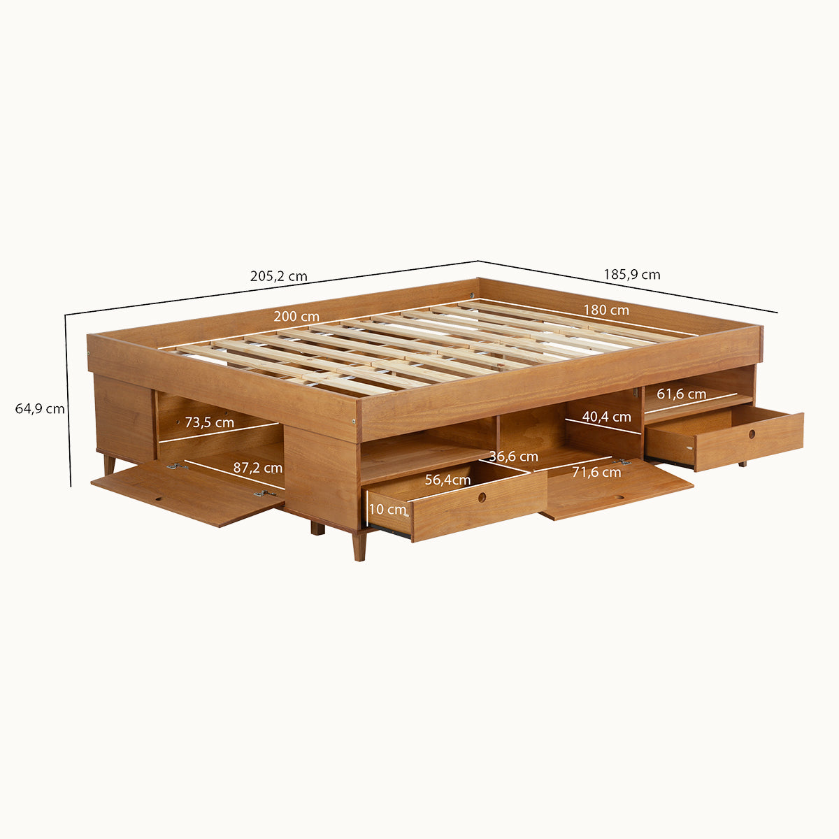 • Die 10 cm hohen Füße ermöglichen eine einfache Reinigung unter dem Bett.