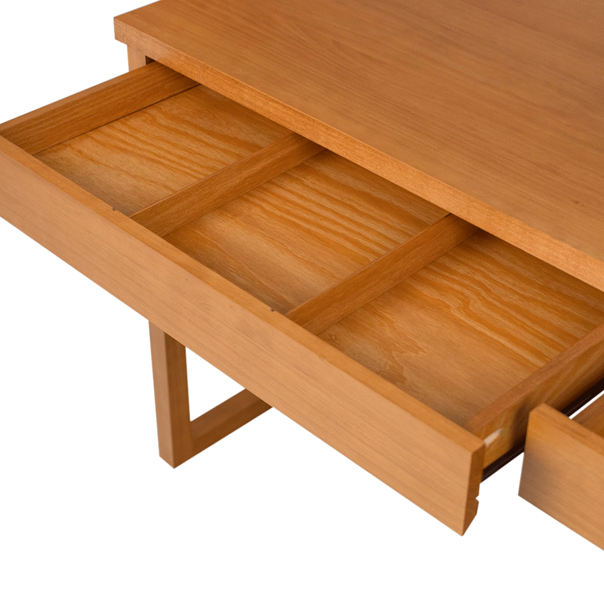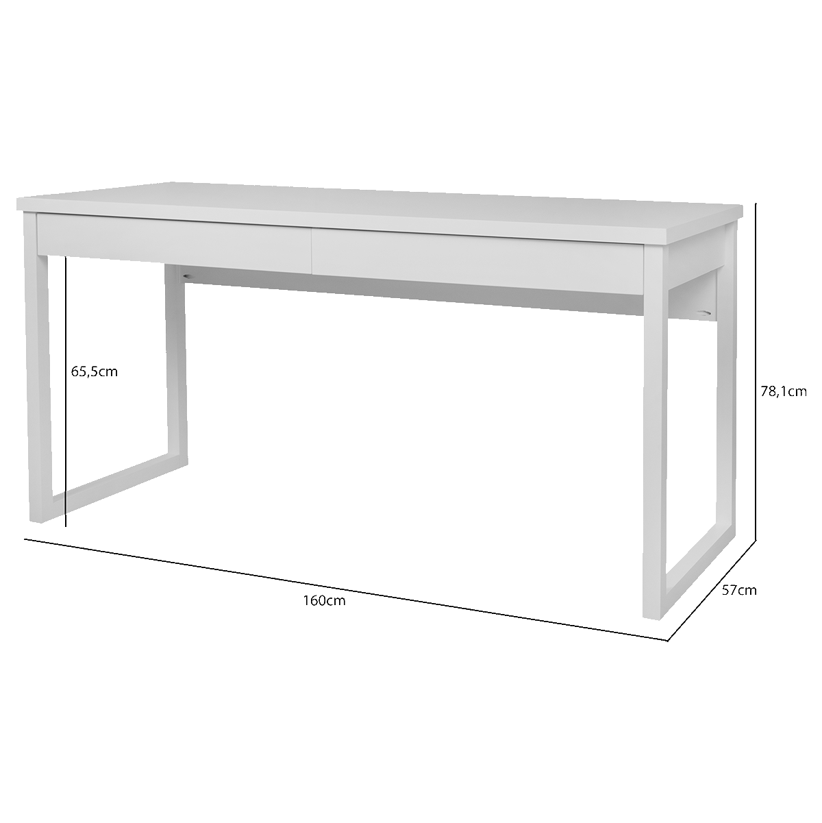 Holz-Schreibtisch für Computer. Modern und clean, passt gut im Büro, im Heimbüro, in Schlafzimmer als Schminktisch oder sogar als Sideboard im Wohnzimmer. Schreibtisch Duna  bietet dir eine großzügige Arbeitsplatte, genügend Ablage platz sowie zwei großzügige Schubladen mit metal schiene und innere Abteilung.